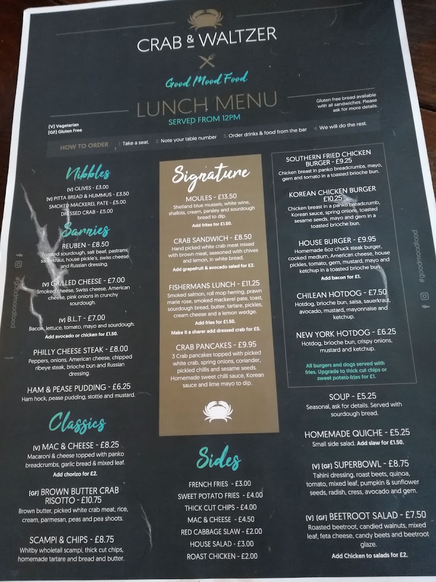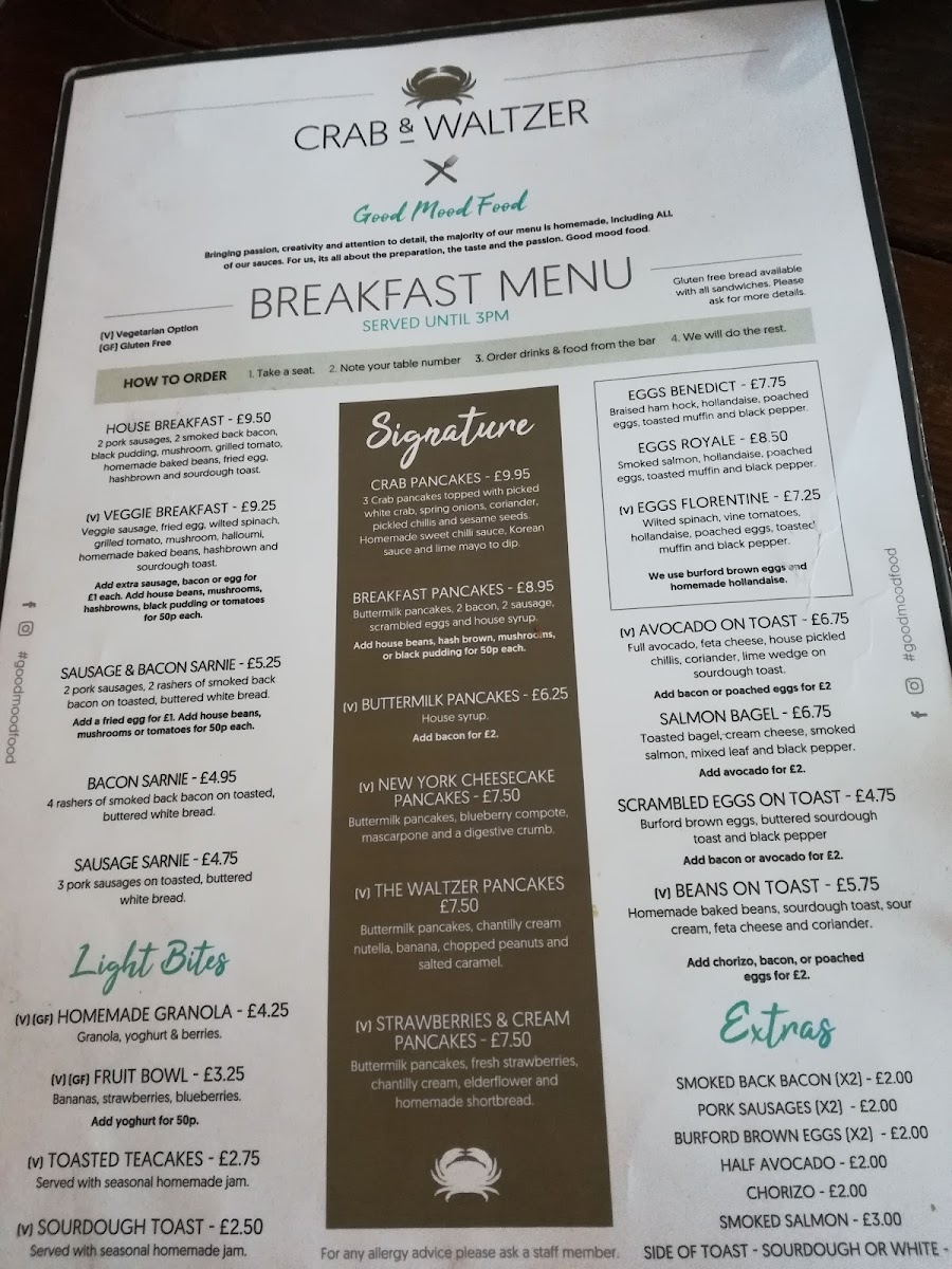Crab & Waltzer Menu